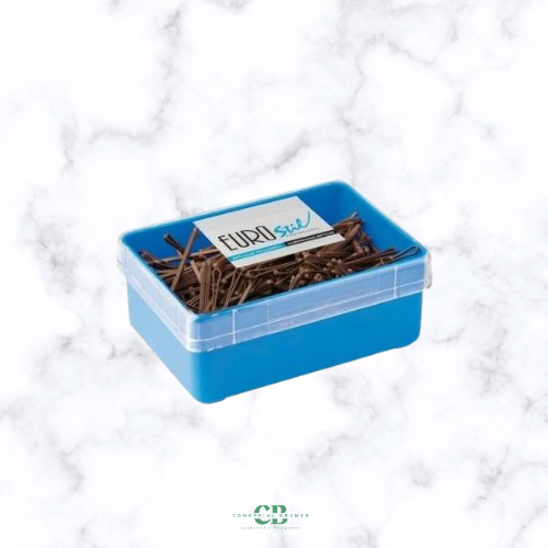 Los Clips Antideslizantes Eurostil mate 50mm caja 300 unidades son horquillas de presión ideales para recogidos. Son en colores mate para pasar lo más desapercibidos posible en tus recogidos. Su recubrimiento hace que no se muevan durante todo el día.