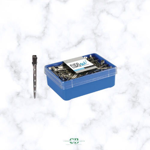 Caja de 60 pinzas metálicas curvadas para rulos.