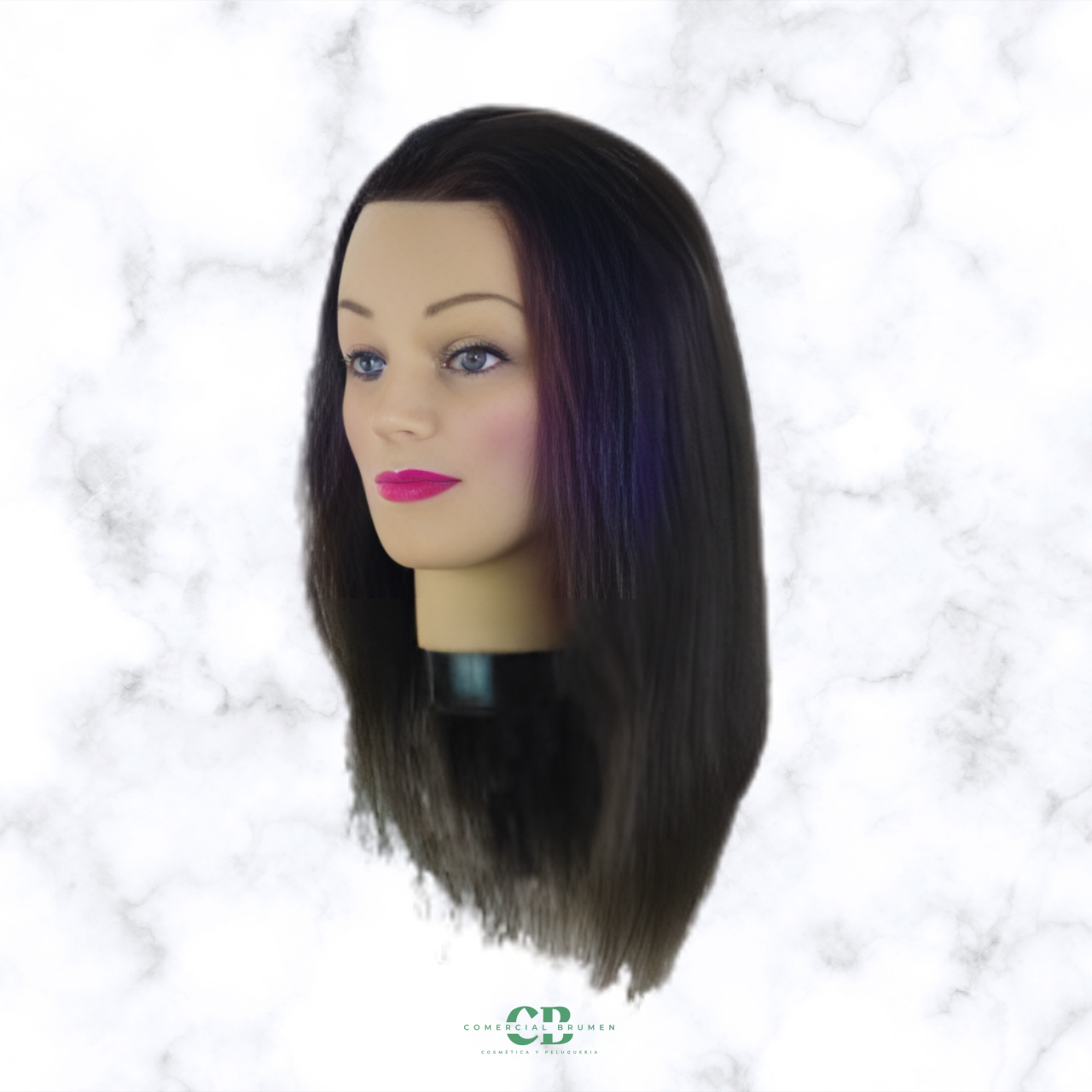 Cabeza maniqui academia cabello natural 35-40cm con soporte.