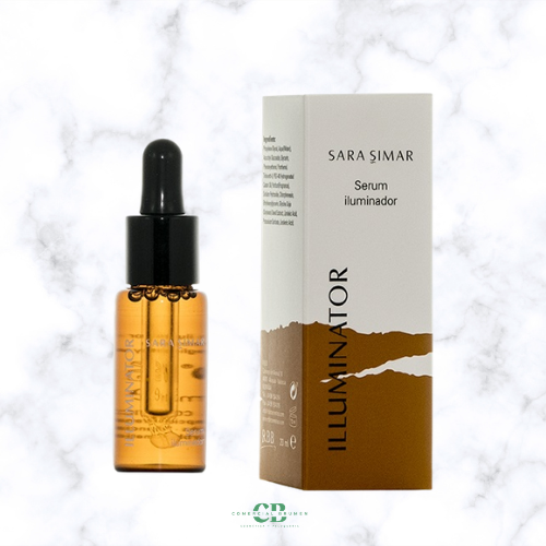 Illuminator es el serum iluminador de Sara Simar, un cosmético diseñado para devolver la luminosidad y la vida a las pieles más cansadas. Este tratamiento ofrece un concentrado de proteoglicanos y vitamina C que favorece la síntesis del colágeno natural de la piel, la proteína que realiza la función del soporte de la dermis. Por ello, devuelve la tersura al cutis y refuerza la firmeza del óvalo facial.
