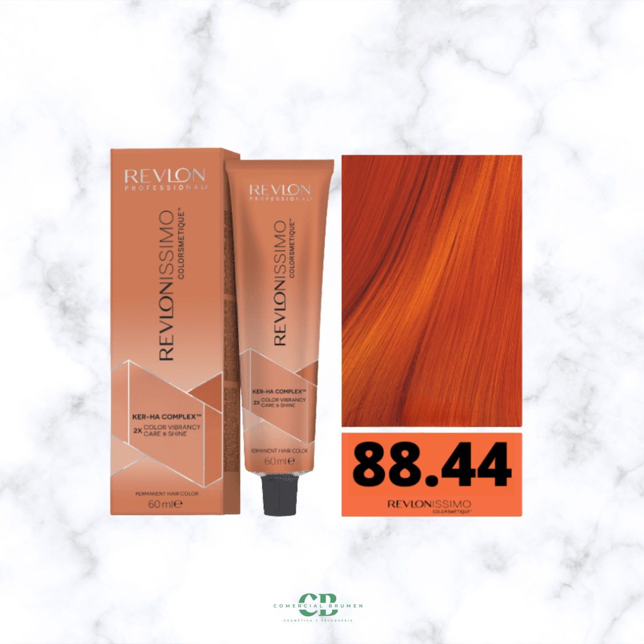 La última coloración permanente de Revlon Professional® Revlonissimo Colorsmetique es una completa gama de coloración del cabello profesional que integra la innovadora tecnología KER-HA Complex, formulada a base de ácido hialurónico que restaura la hidratación y el brillo de raíz a puntas. La Fito-queratina reparadora, una mezcla de 3 aminoácidos de origen vegetal que ayudan a proteger, reparar y fortalecer la fibra capilar, mejorando la integridad de las proteínas desde el interior y fortaleciendo la condición del cabello. Captura los radicales libres que dañan la estructura del cabello brindando protección para un color de aspecto más saludable . Y la Molécula antioxidante que controla la velocidad de reacción de coloración para garantizar que las moléculas de tinte permanezcan más pequeñas durante más tiempo para ingresar a la fibra capilar, lo que les permite expandirse y permanecer dentro para minimizar el cambio de color