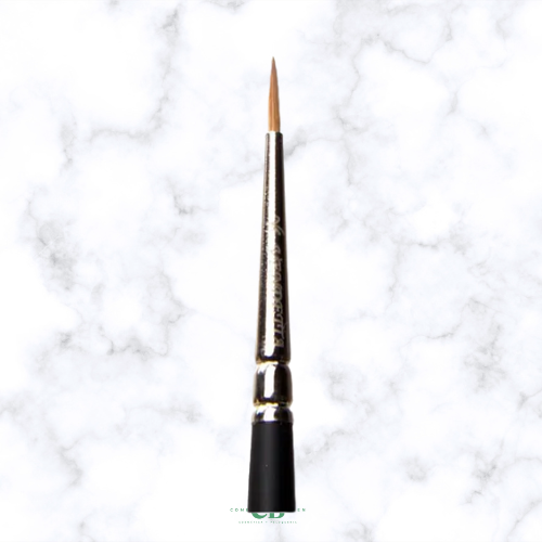 La virola de aluminio plateado asegura durabilidad y mantiene las fibras alineadas, mientras que el logo de la marca y la descripción del pincel grabados en el mango aportan un toque elegante y profesional